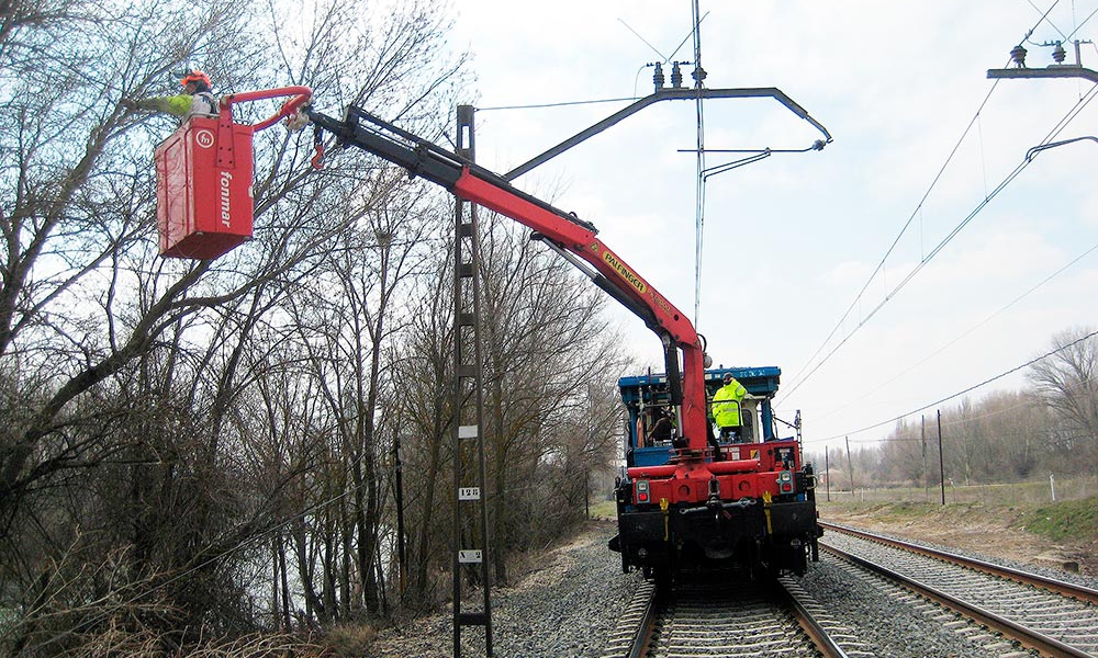 Para realizar estos trabajos en vías férreas disponemos de vehículos adaptables a los railes y vagones especiales para el tratamiento químico a base de herbicidas, además de un vagón totalmente equipado para el tratamiento a horas de no uso comercial de las infraestructuras.